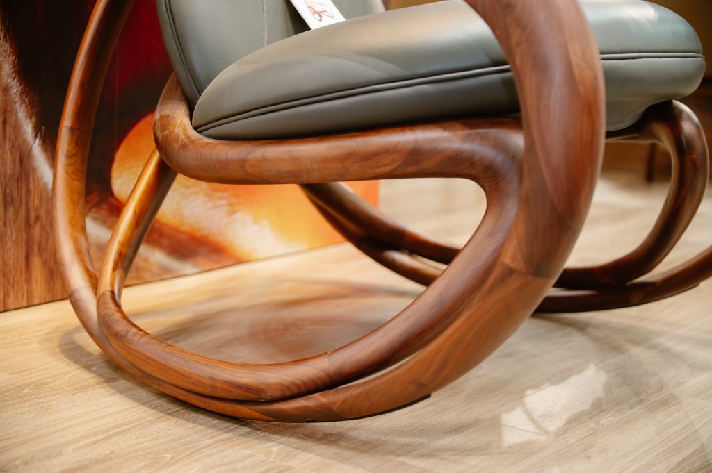 Các sản phẩm như ghế thư giãn, ghế đọc sách hay bàn ghế ăn được thiết kế với đường nét tinh giản, cân đối và chú trọng đến trải nghiệm người dùng. Sự kết hợp giữa chất liệu gỗ tự nhiên, da và vải nỉ giúp sản phẩm vừa mang lại cảm giác sang trọng, vừa tạo nên sự thoải mái khi sử dụng.