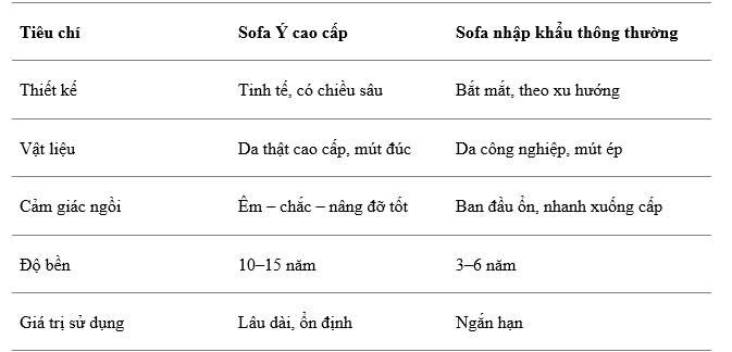 5. So sánh tổng quan sofa Ý cao cấp và sofa nhập khẩu thông thường